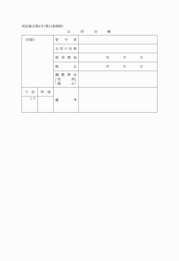 第18条 総務課長は、公印台帳を作成し、公印の名称、印影、用途及び管守者名を登録しておかなければならない。