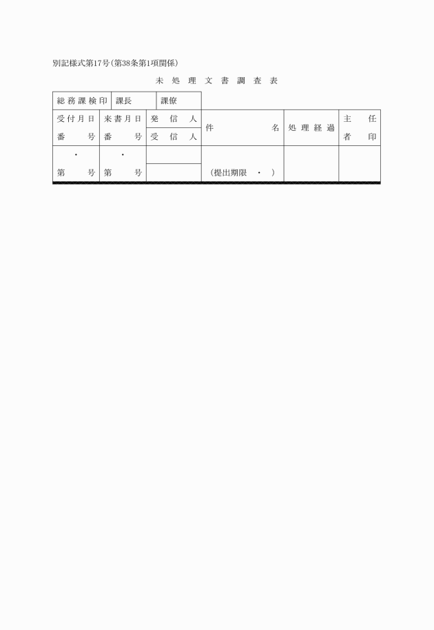 第7条 令達及び往復文等の書式は、公文書式(別表第1)によるものとし、その書式により難い場合又は書式によることが不適当な場合においては、あらかじめ総務課長と協議して他の書式によることができる。